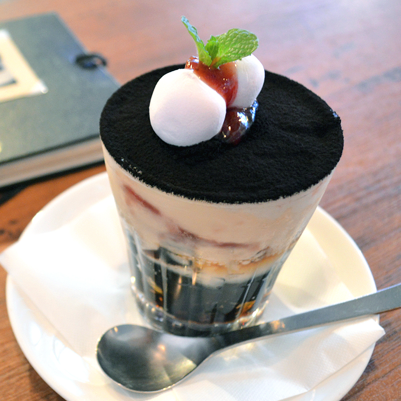 デーブルに運ばれてきた珈琲ゼリーは一見、ティラミスのような見た目。