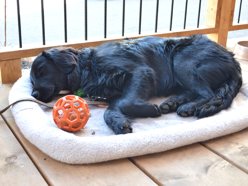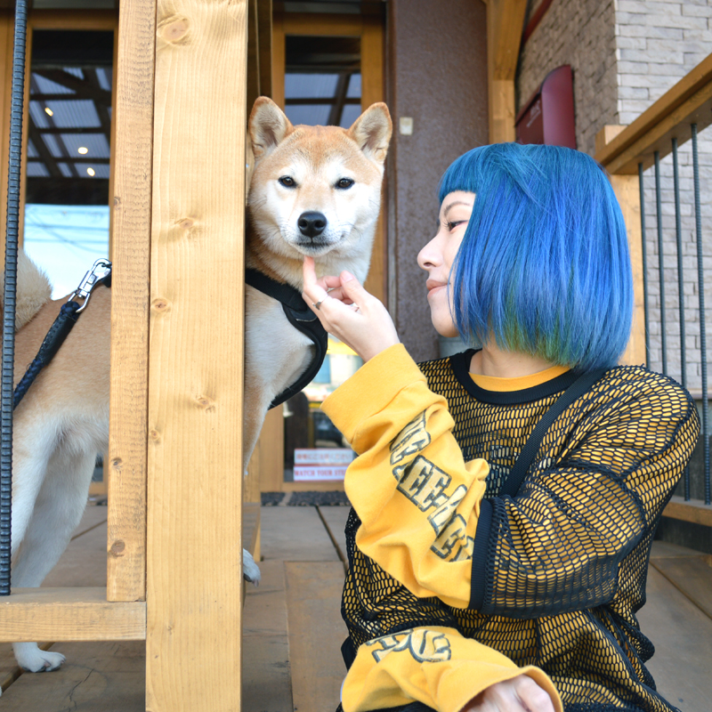 オープンテラスもあり、愛犬家には嬉しいドックカフェとして使用することが出来ます。看板犬は穏やかな性格で私の愛犬たちにも会わせたくなりました。