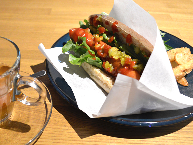 自家製のメープルマスタードが使われたホットドッグ。食事メニューは他にもメープルジンジャーカレーやチーズとメープルを使ったピザなど気になるのが沢山揃っていました。