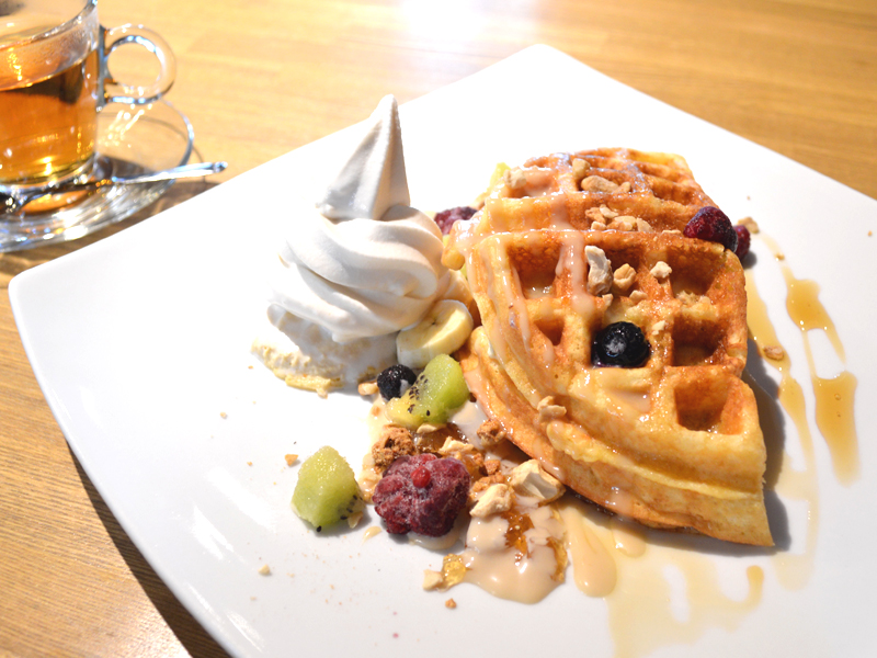 柔らかいワッフルは甘さ控えめでメープルの味がしっかりと味わえるようになっていました。メープルゼリー入りというのも珍しい。