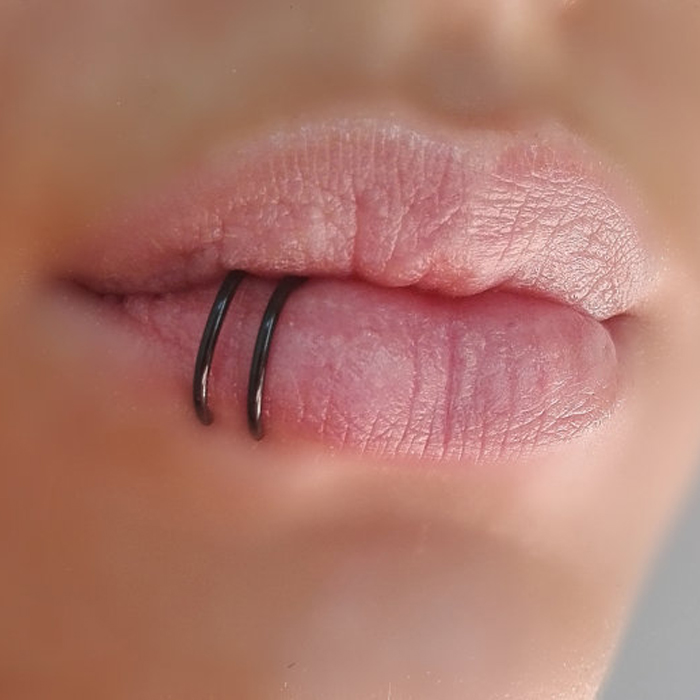 着用している見た目はリップピアスとほとんど変わらなく、ブラックカラーや2連など種類も様々出ています。