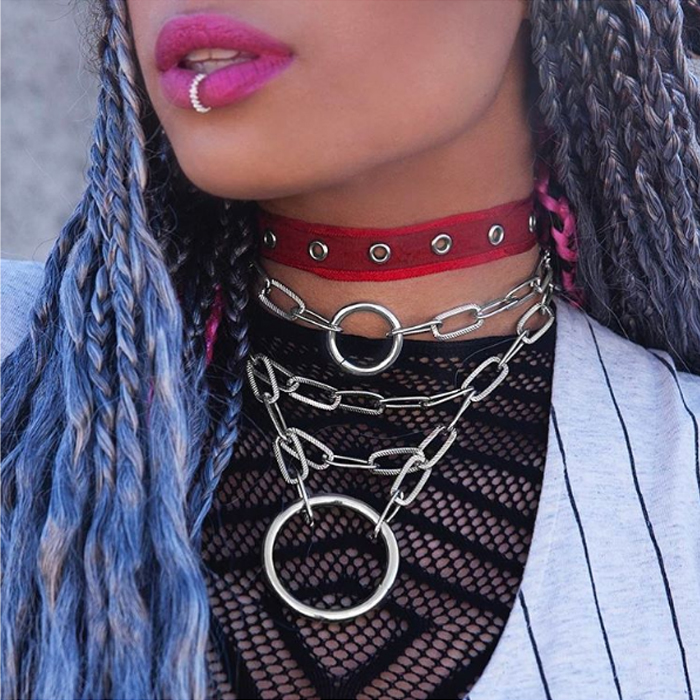 今まではハードな印象でパンク調が強いかと思いきや、細いリップリングだと上品に見えたり意外と使いやすいアイテムでした。真っ赤なリップに細いゴールドもレディで素敵です。