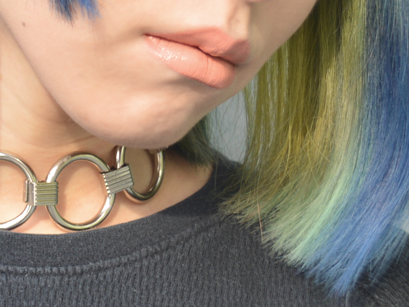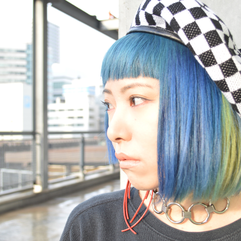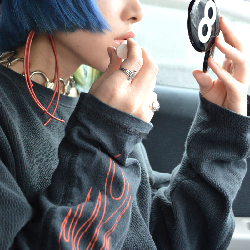 青い髪の私が最近愛用しているリップカラーがオレンジ。髪色が原色なのでリップはヌーディなぐらいがちょうどいい。最近はobsessive compulsive cosmeticsのLIP TARを愛用しています。