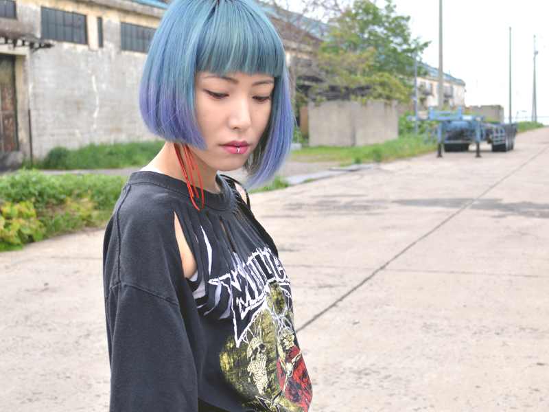 METALLICAのバンドTシャツはデザイナーの友人がリメイクしてくれたもので、計算されたカットデザインが気に入っています。