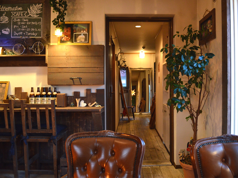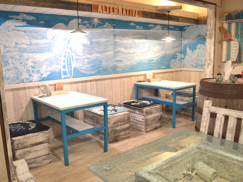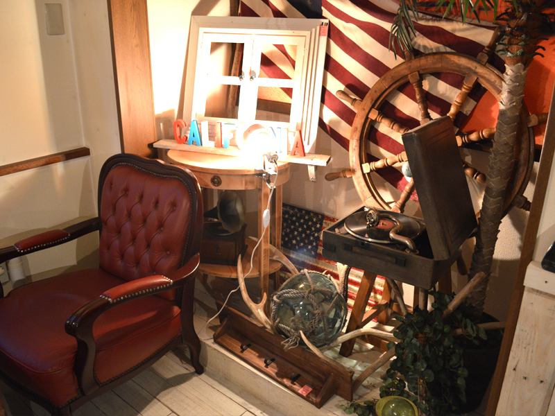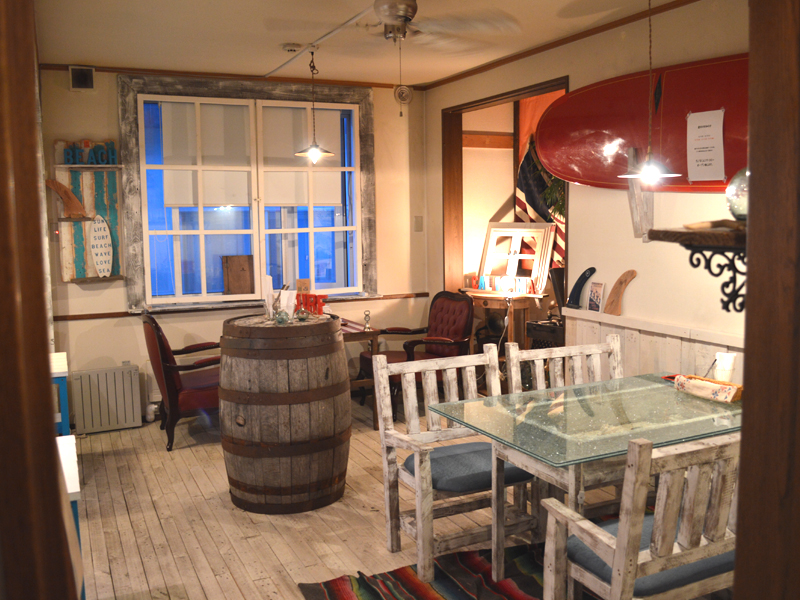 2階はカフェフロア。部屋によってテーマが変わり、こちらは西海岸風のお部屋。元々が古民家だった各部屋を残しているため、家特有の個室空間で落ち着くことが出来ます。