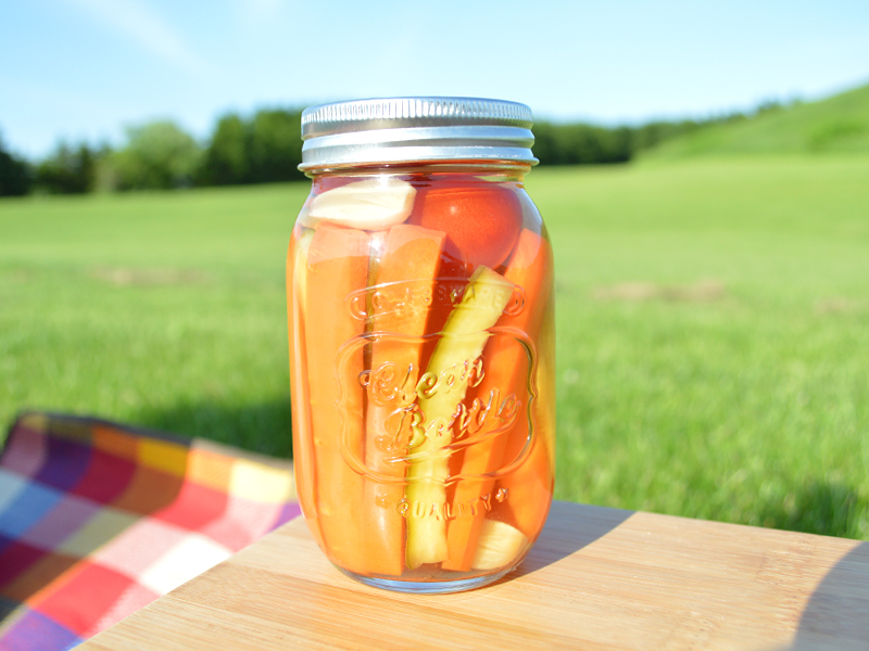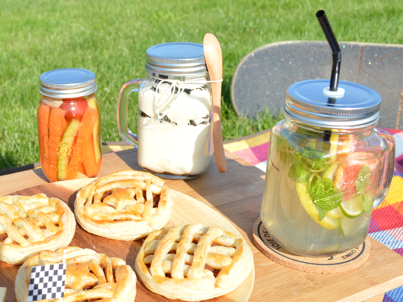 先日からビン類に詰めて準備しておくとピクニック当日は冷蔵庫からビンやジャーを取り出すだけで楽です。