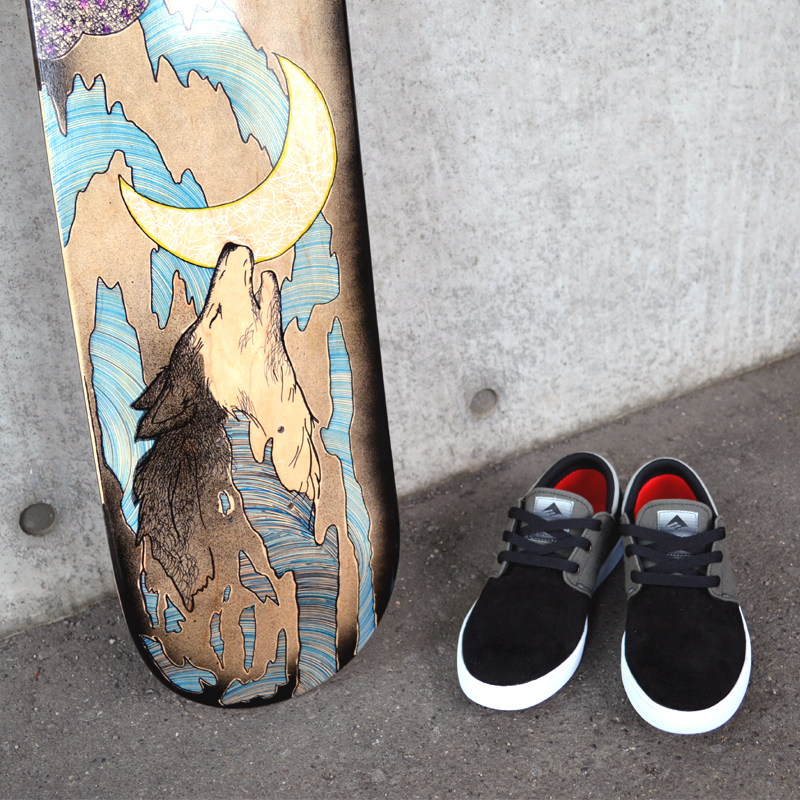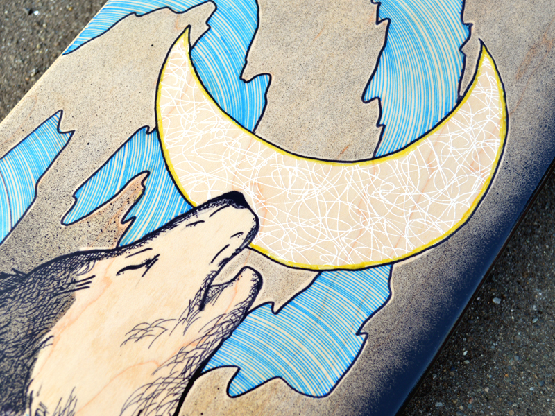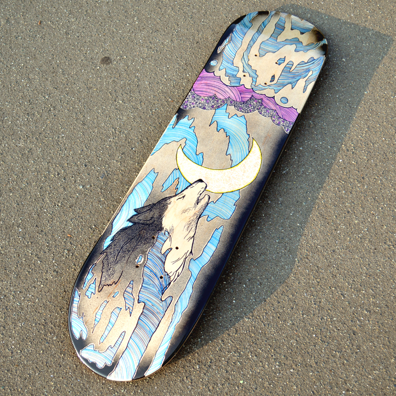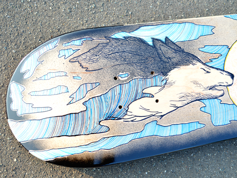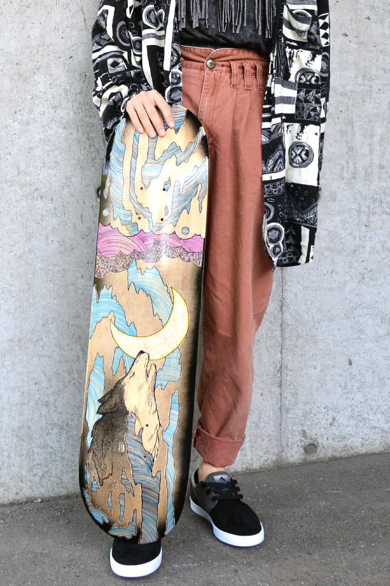 全て手描きで仕上げてもらい、デッキの木目と同化して漂うような狼に彼のセンスを感じます。