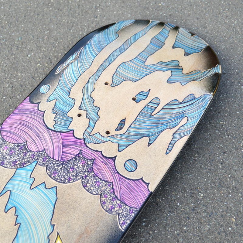 その友人の本職は理容師で、趣味で描き始めたオリジナルデッキはたちまちスケートファミリーの中で話題に。
