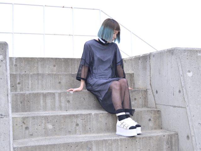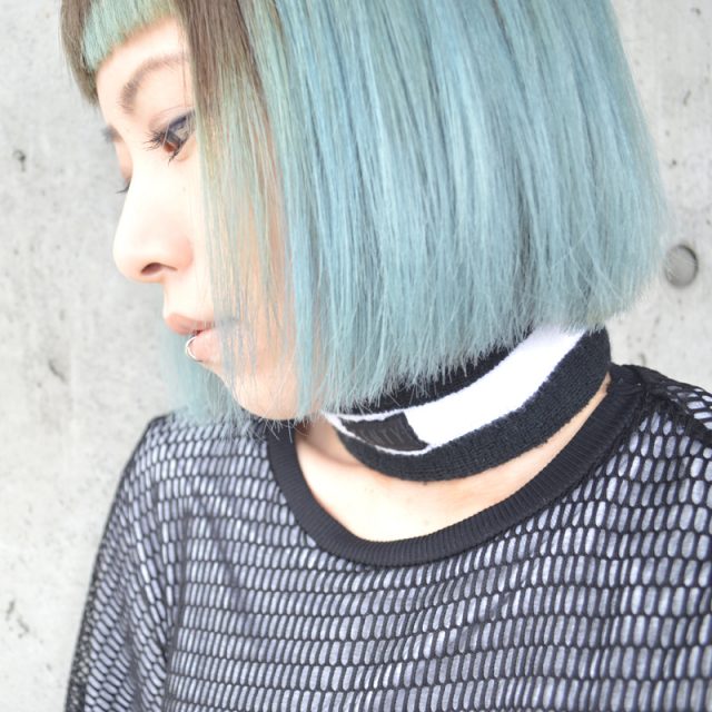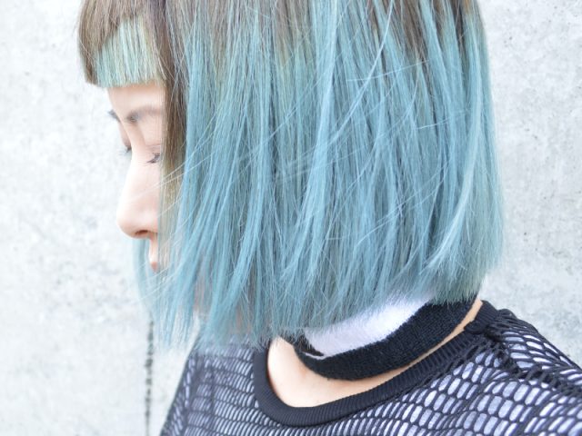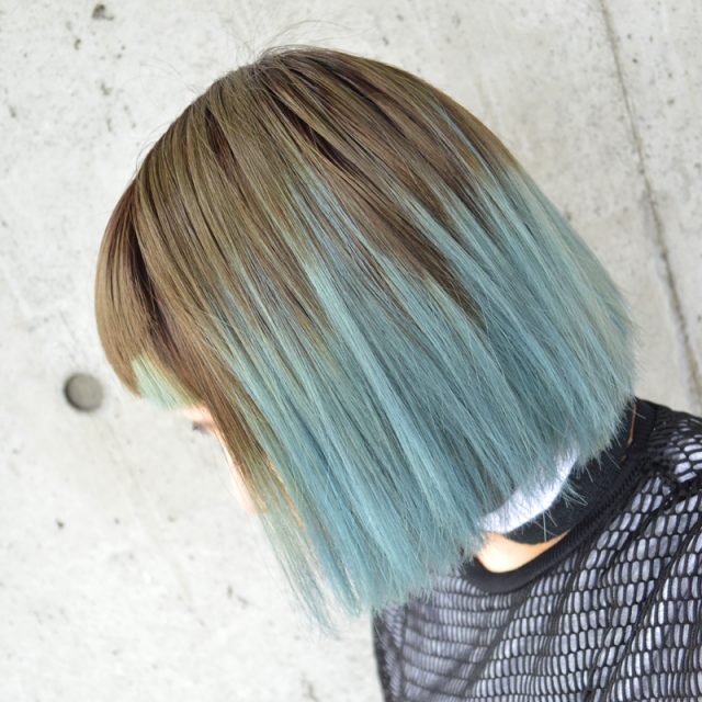前回のブロンドヘアの上からブルーのヘアカラーとシルバーメッシュをON。