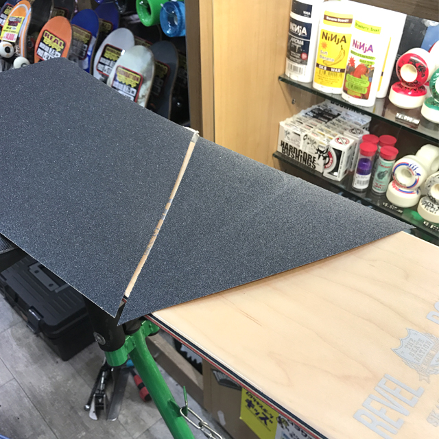 先日、ムラサキスポーツにお邪魔して場所を借りながら新しくデッキテープを貼ったときのことを。