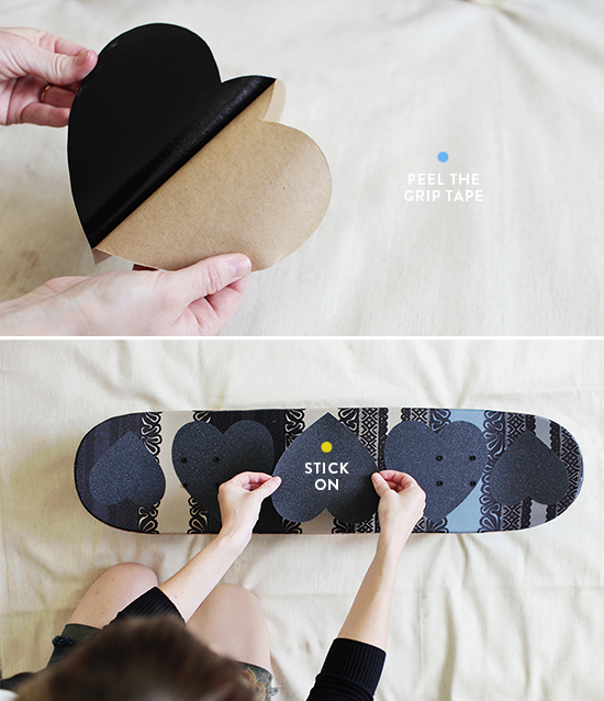 トリックする人には向かないけれどクルージングするだけだったら、こういうハート型に切って並べるアイデアもかわいい。せっかく貼るなら自分のオリジナルを追及してみるのも楽しいかもしれません。