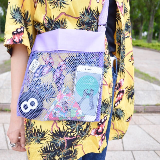 夏らしいメッシュバッグは、キャンプやお祭りの時も便利。