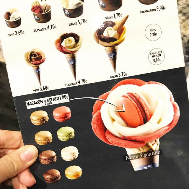 この日は寒い日だったけれど、お店の前にあったバラの形のジェラートの看板に惹かれてつい入店。