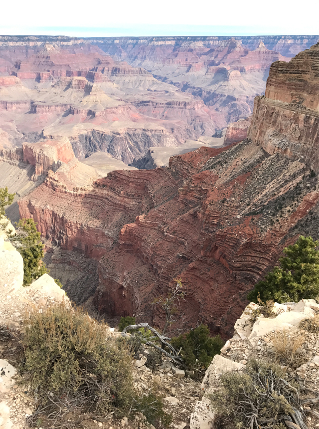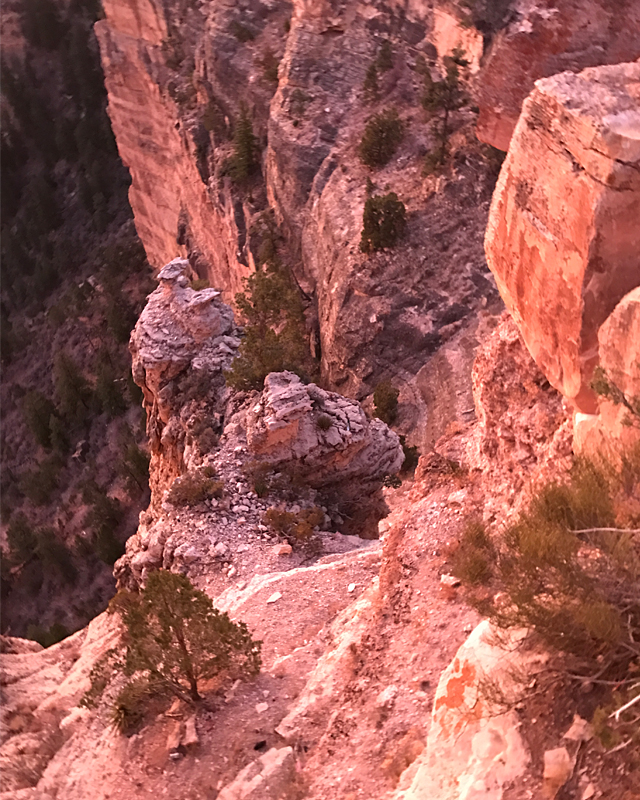 グランドキャニオンには柵がない場所も多く、人が歩く場所のすぐ側に崖が沢山。
