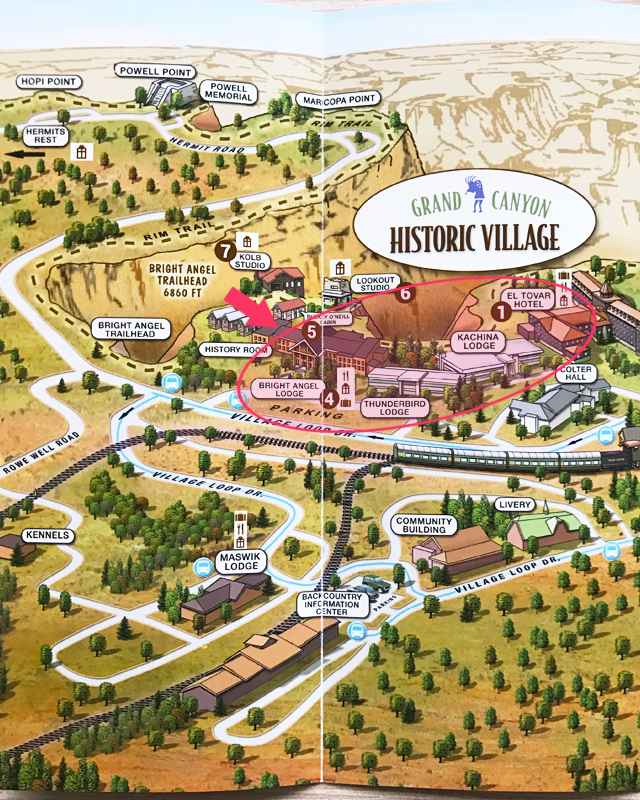 サウスリムの中心となるのはグランドキャニオンヴィレッジエリア