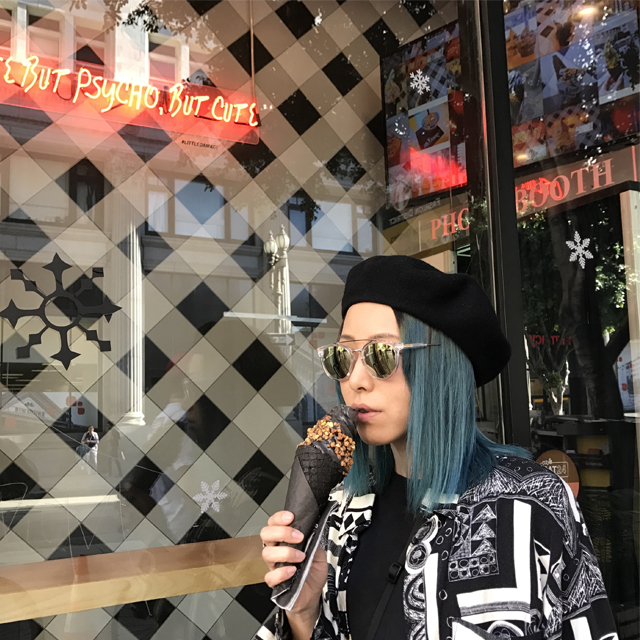 カラーヘアとカラーレンズのコントラスト。私の2018年初サングラス #LA #sunglasses