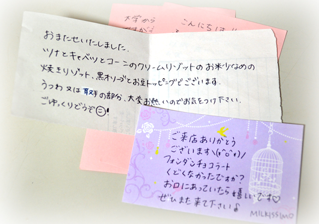 筆談で注文のやりとりした後に店員さんから、筆談でのメッセージを頂いたことがあり