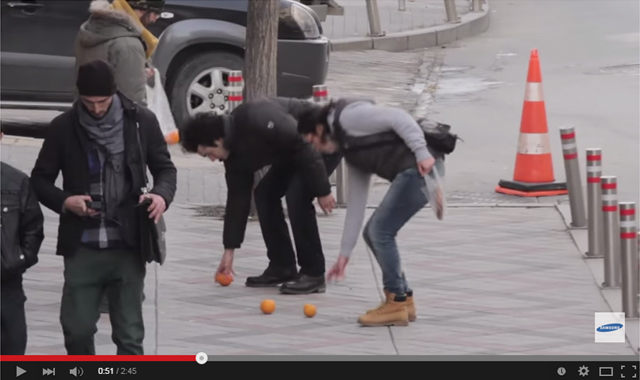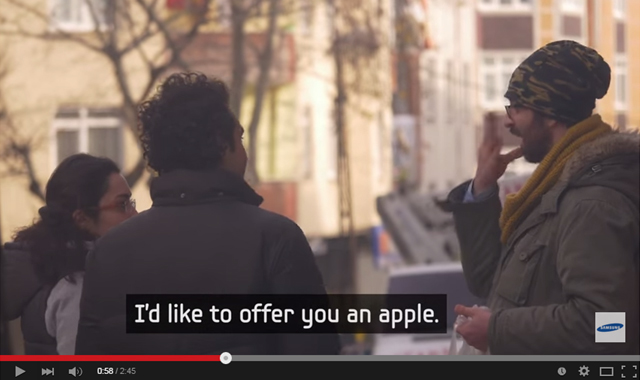 拾うのを手伝ったMuharremさんは男性からお礼の手話と共にリンゴを貰いました。