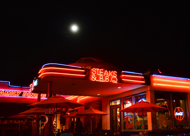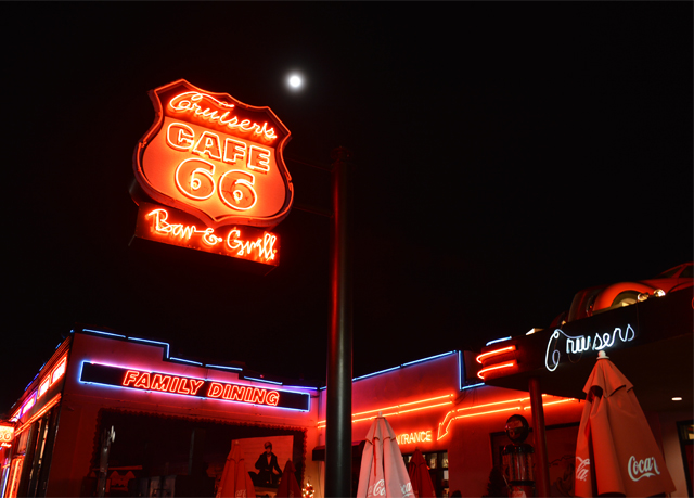 この日は夕食がまだだったので、モーテルを探す前にこちらのダイナーCruiser’s Route 66 Cafeへ入ることに。