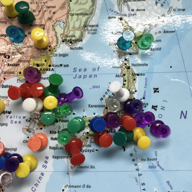意外にも北海道にはピンが1つも刺さっていなく札幌と故郷の釧路にピンを刺しました。