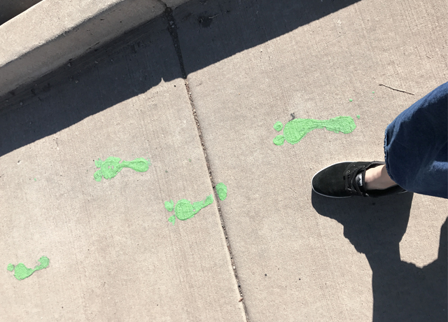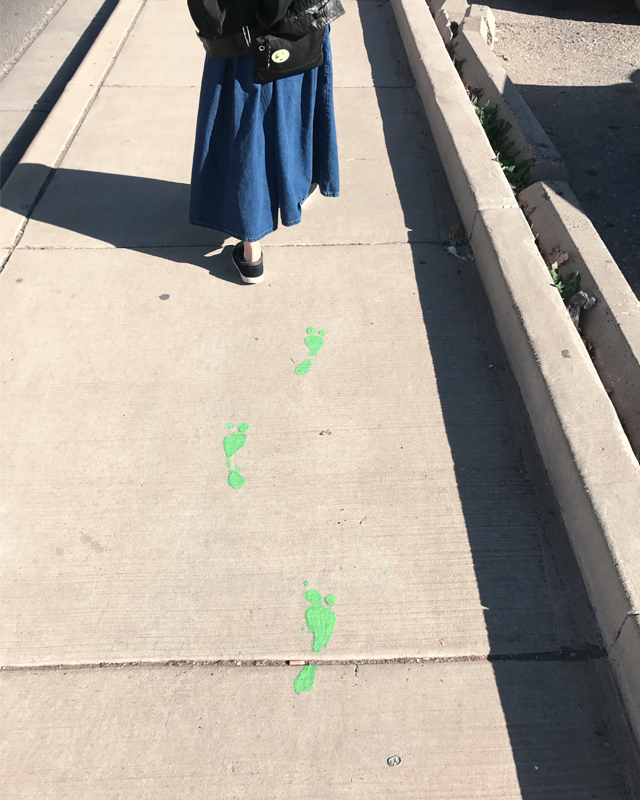 ロズウェルの街を探索していて、ふと足元を見たら宇宙人の足跡のペイントが。