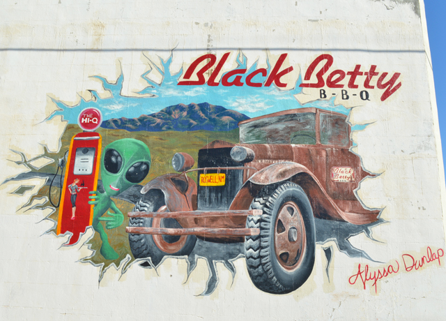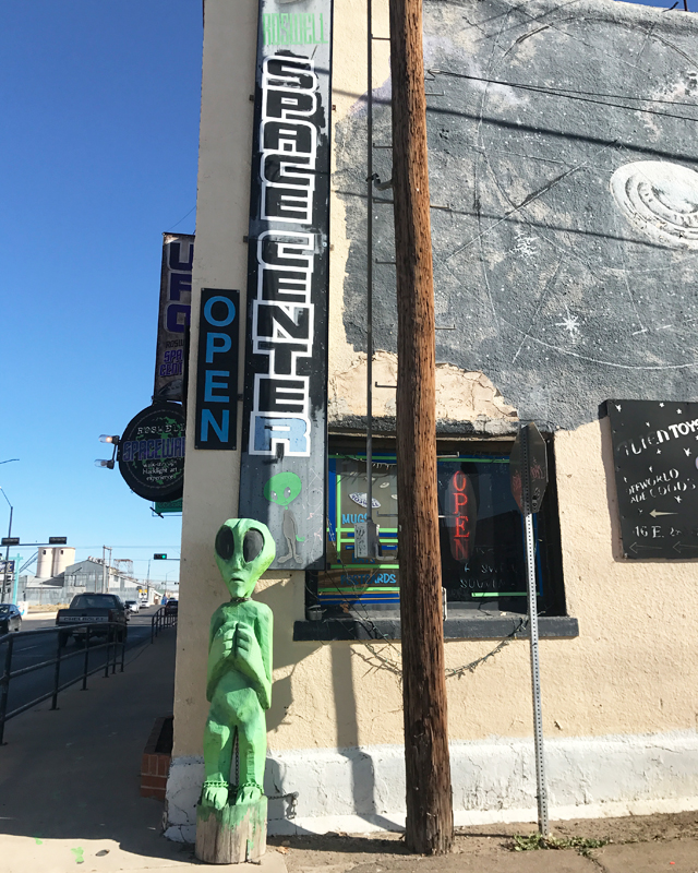 ロズウェルの街はグラフィティにも宇宙人がいたり、お土産屋さんだけではなくご飯屋さんまでもが宇宙人を前面に出している。