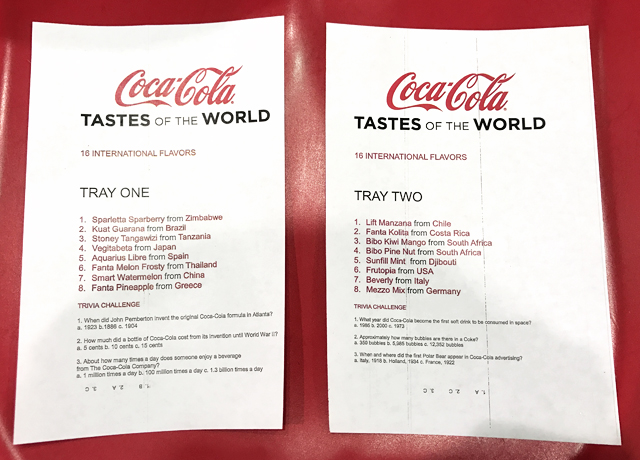 世界16ヶ国のコカコーラ社のドリンクリストが書かれた2枚の紙も貰いました。