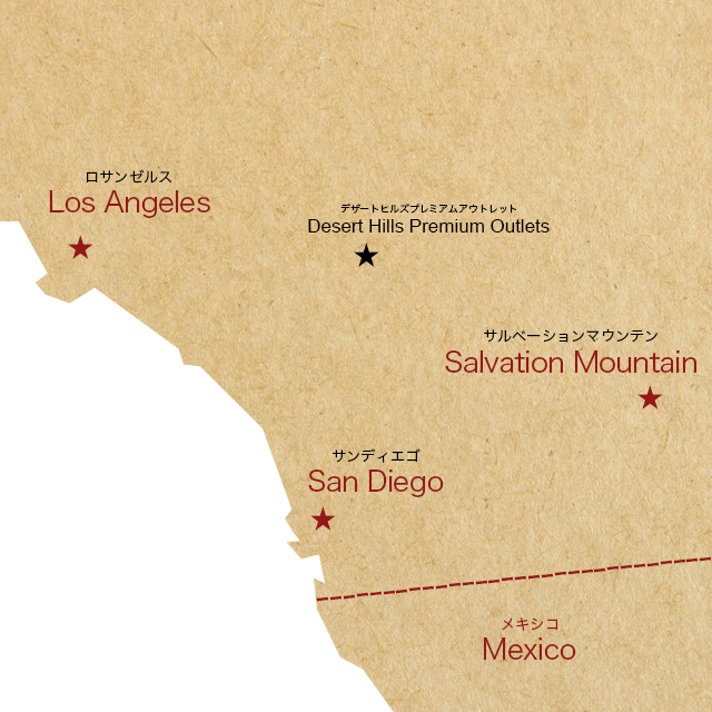 サルベーションマウンテンからは車で約1時間40分。ロサンゼルスからも約1時間30分の距離でちょうど中間時点にあたります。