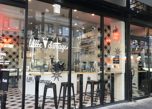 高層ビルが建ち並ぶダウンタウンにあるお店の名はLittle Damage / リトルダメージ