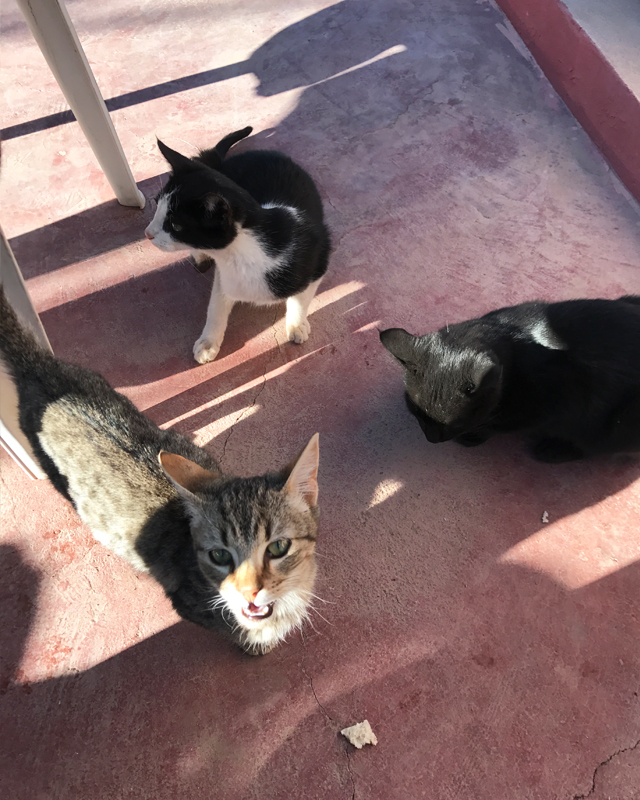 自分がレストランやカフェで食べ残したご飯を、野良犬や野良猫たちにあげたりなんかしたら日本では怒れたり、ましてやお店の中でって非常識だって言われちゃうよね。でも、ここモロッコではお店の人も喜んでくれる。