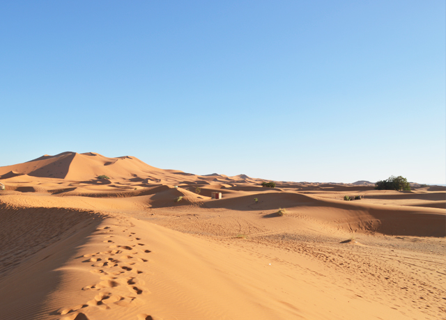わたしが今回訪れたのはメルズーガで、そこには砂漠のイメージ通りの大砂丘が広がっている。