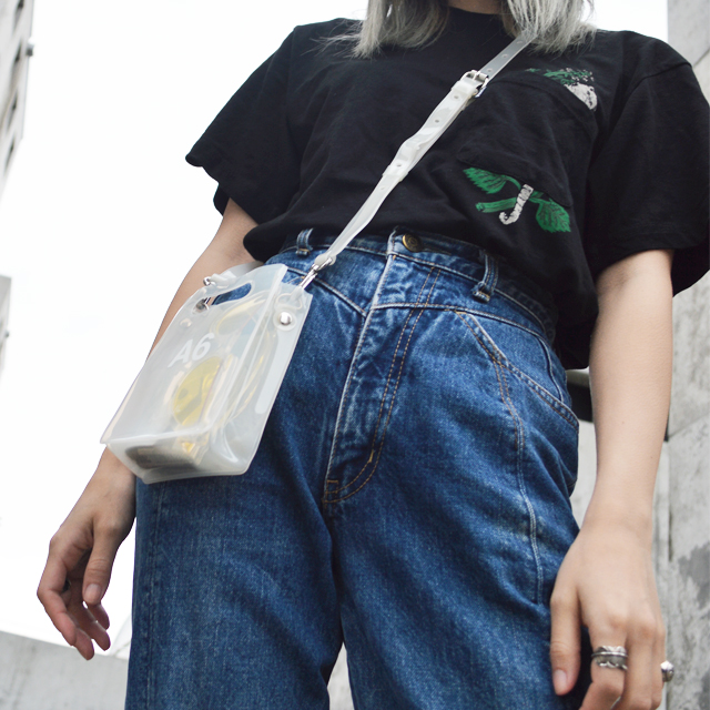 このバッグを選んだ理由は、無縫製で圧着仕上げのシンプルさを追求したデザインと”A6″と用紙サイズがプリントされた遊び心。