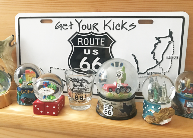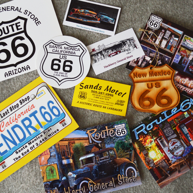 節約の長期旅なのにROUTE66グッズだけは別でした。。本当は部屋に飾るROUTE66のネオンサインとか欲しかったけれど、荷物にならないステッカーやピンバッチを買っていたら集め過ぎてしまった感が。