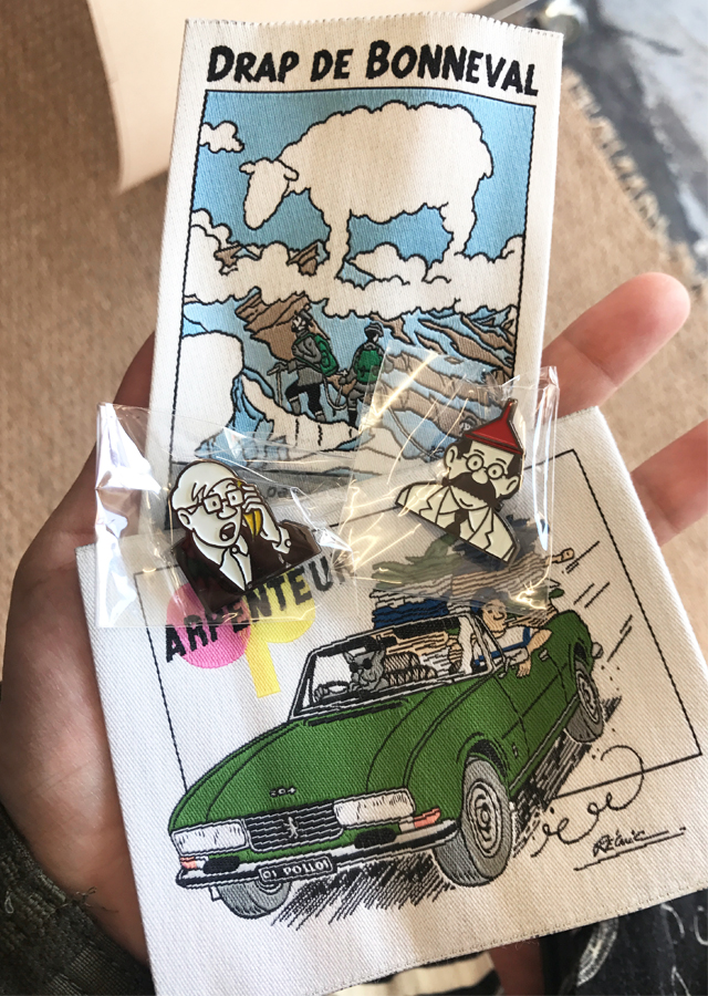 タグの絵もまた素敵だねって言ったら50-70年代フランスコミックのティストを意識しているんだって。タグやピンバッチといった細かいディテールまでこだわりが行き届いていて思わずため息が出る。