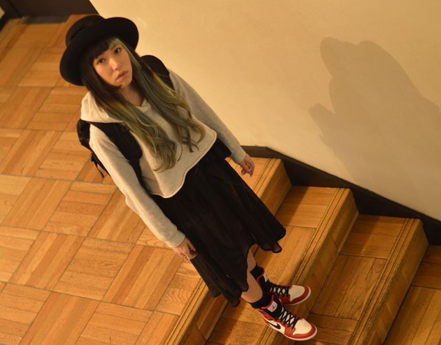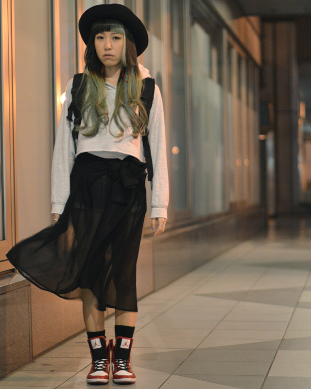 早速、1枚目はお気に入りのスニーカーAir jordan 1を合わせてみました。
