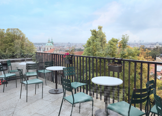 急な坂を登ってようやく辿り着いたとき、なんとプラハ城正門の目の前にスタバがあった。そこには広がるプラハの絶景。