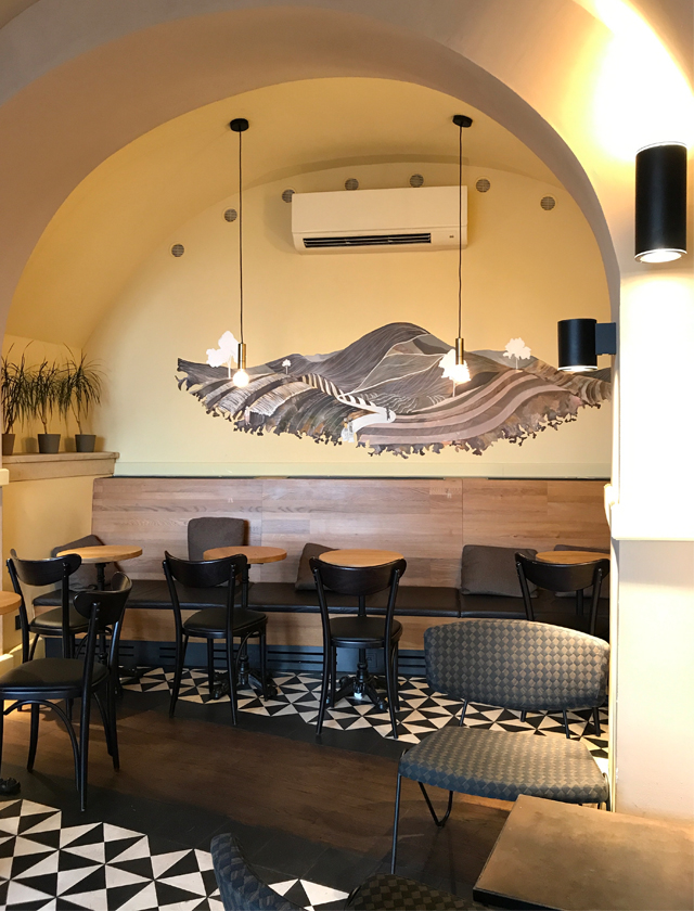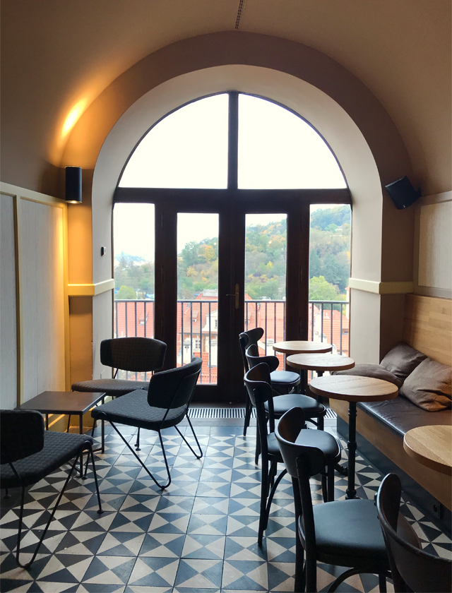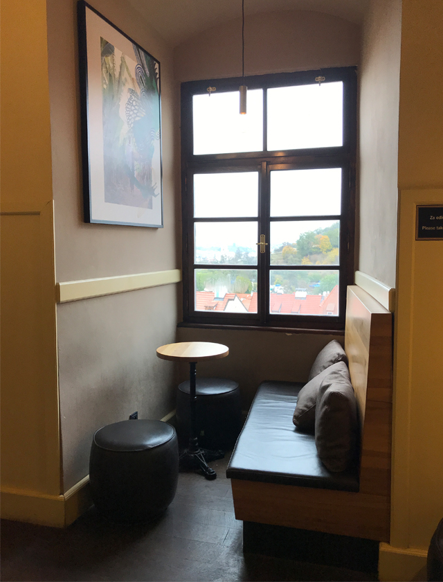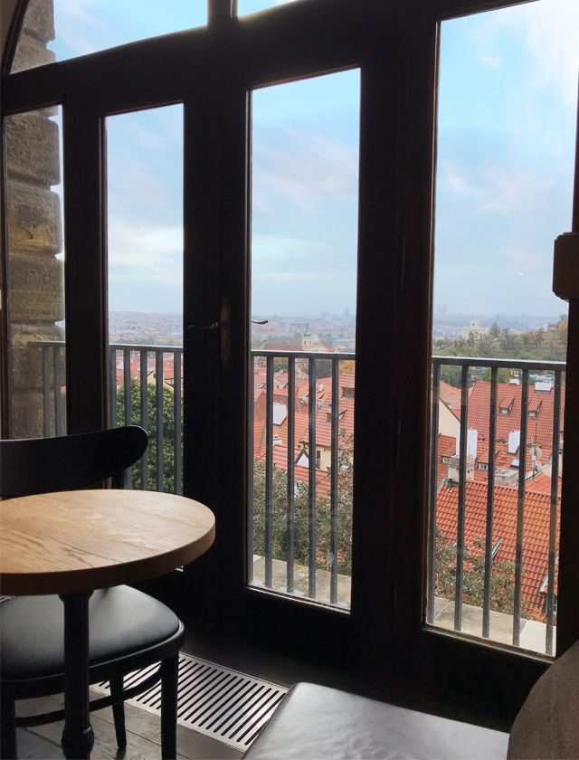 今回はせっかくなので屋外テラスに座ったけれど、店内ならこの席も好き。開放感溢れる窓からプラハの町並みが見渡せます。
