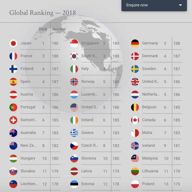 アメリカやロンドンは186カ国、イタリアやスペインは187カ国というのを抑えて190カ国訪れることが出来る日本がナンバーワンに。