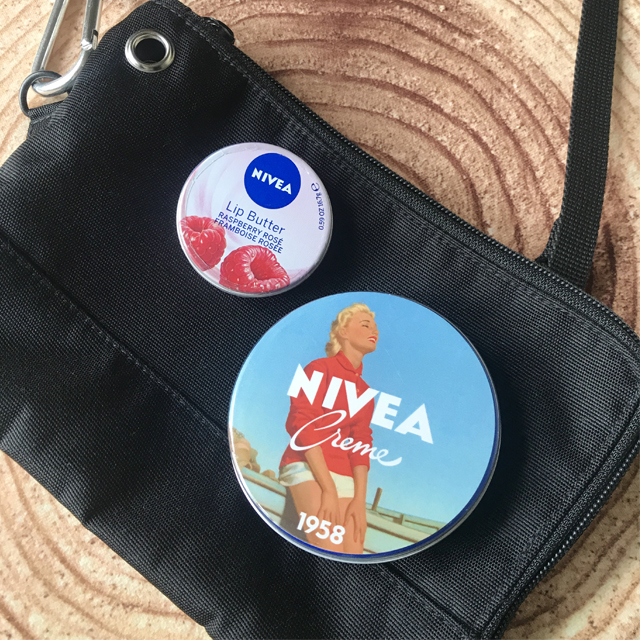 復刻版ニベアは自分用にも買ったのですが、バッグに入れていても可愛いデザインが気に入っています。
