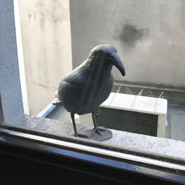 ふと窓際を見るとカラスのオブジェが置いてあったり遊び心も満載。