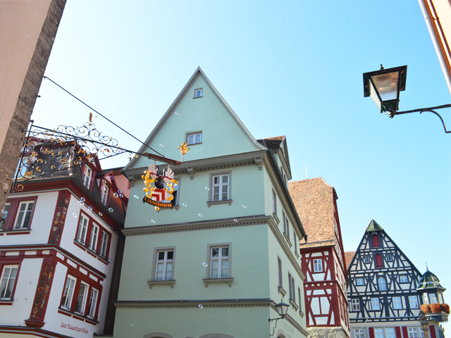 ローテンブルクと言えば、木組みのパステルカラーの家が建ち並ぶ2つに分かれた通りプレーンライン
