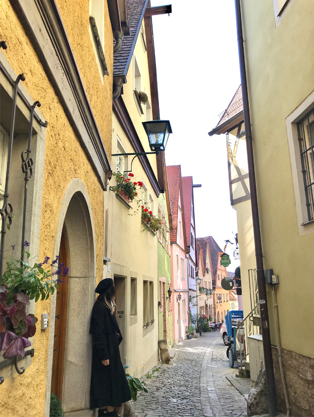 ローテンブルクの旧市街は入り組んだ路地が行き交っていて、時間の許す限りゆっくりと探索しました。中世の面影が残っていてタイムスリップした気分に浸れちゃいます。