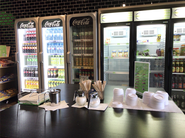 環境が整っている地域ではドリンクが買えたり待合室がある場所も。下記の写真はベルリンなのですが、ここまでライムグリーンで統一されているのが爽やかですね。