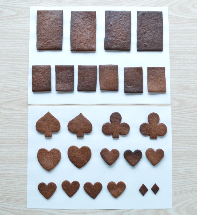 まずトランプクッキーは、ココアクッキーをトランプ型に焼くところからスタート。