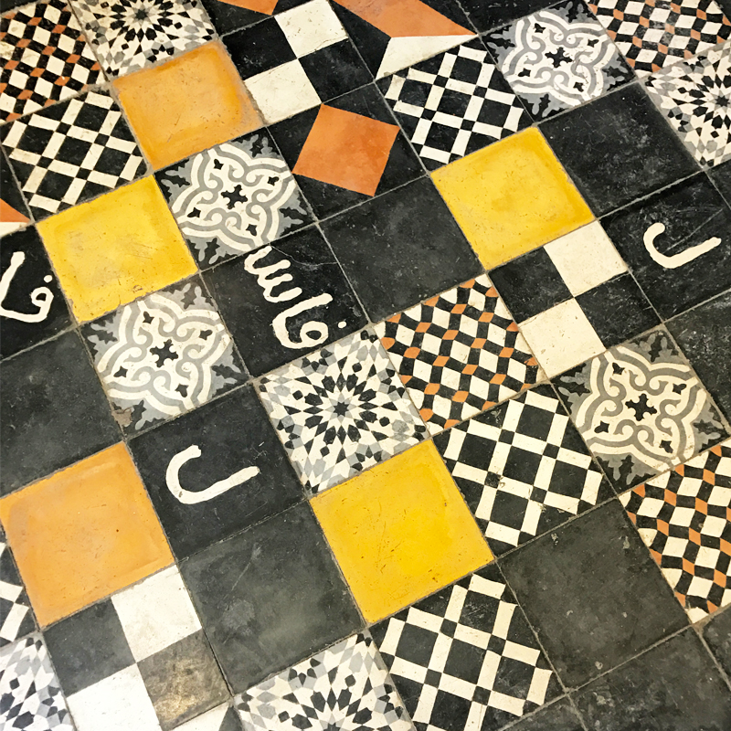 モロッコではゼリージュと呼ばれるモザイクタイルの床