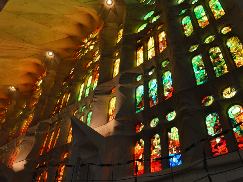 サグラダファミリアは構造がとても素晴らしいだけじゃなく、ステンドグラスもとても綺麗。
