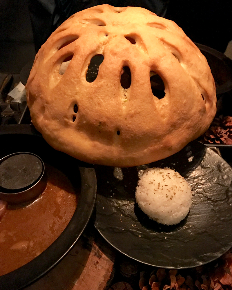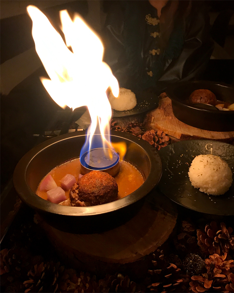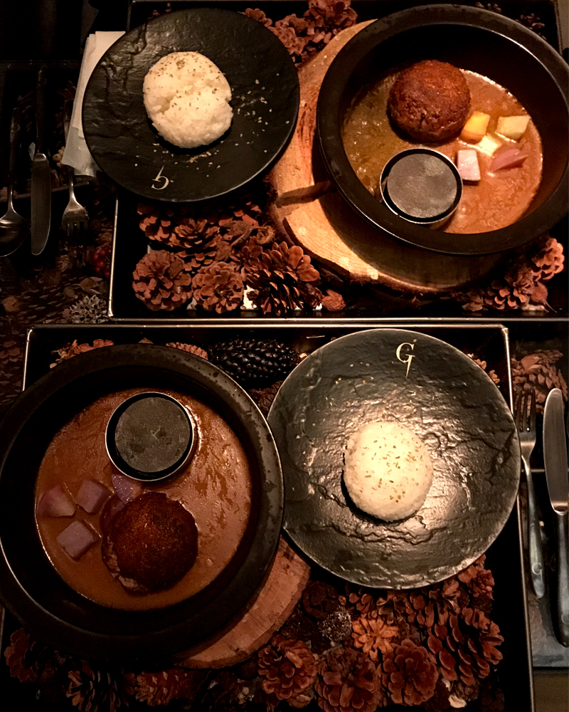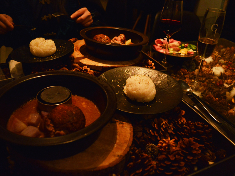 訪れたのはディナーの時間で、土の中をイメージしたというお店はどこかダークな世界観が落ち着く空間。
