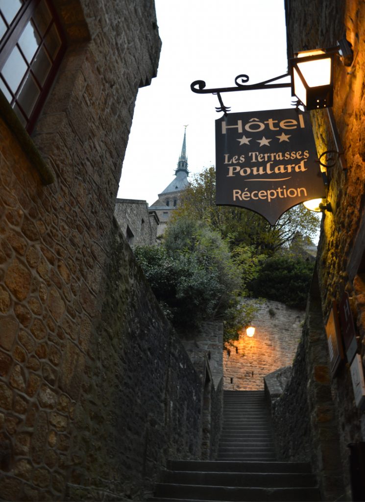 宿泊するメリットはかなり大きく、日帰り観光客がいない早朝、日没以降の夜の時間帯はゆっくりモンサンミッシェルを独り占めできます。