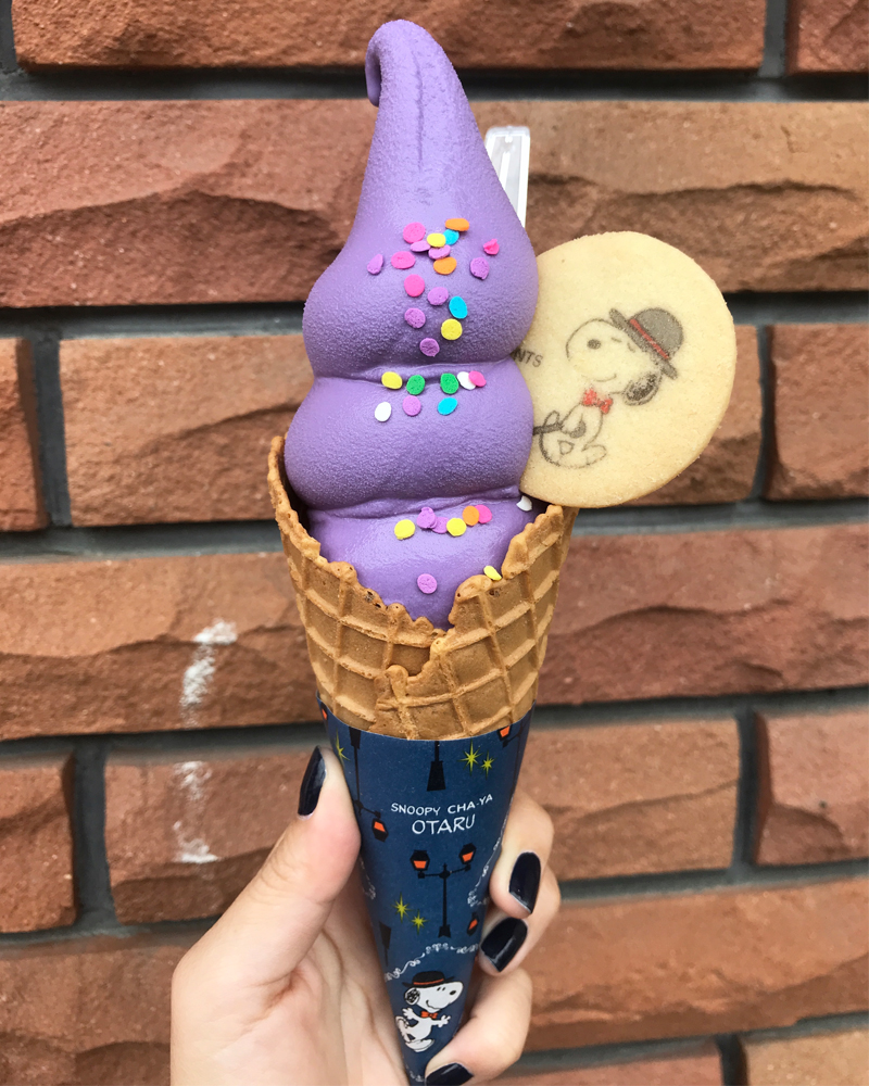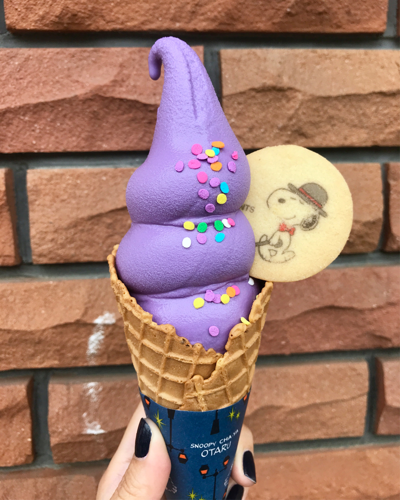 北海道に来たら一度は食べてみたいラベンダーソフトクリームがスヌーピー茶屋で味わえる #小樽