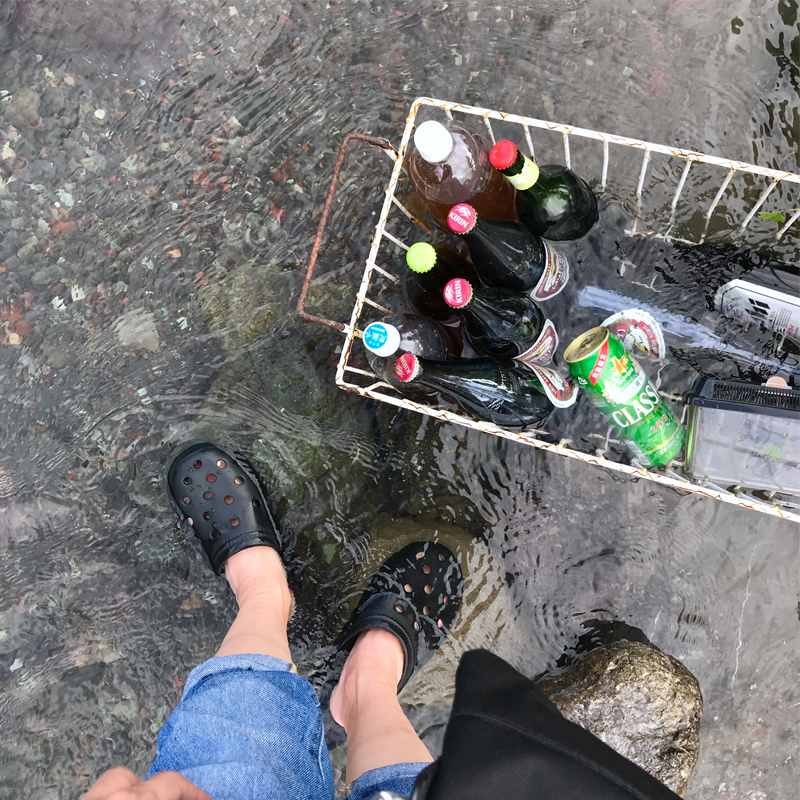 水道がないため、洗剤は使わず川で食器や鍋を洗い、参加者は顔や身体を洗ったりしていました。